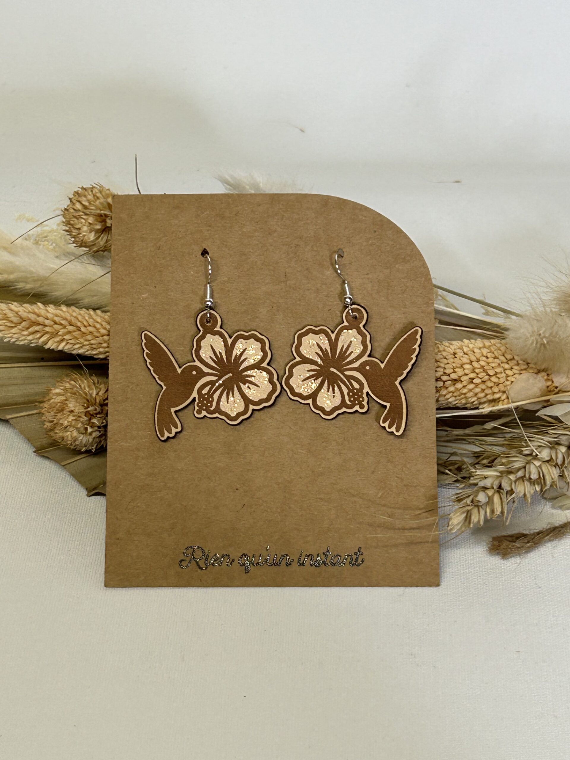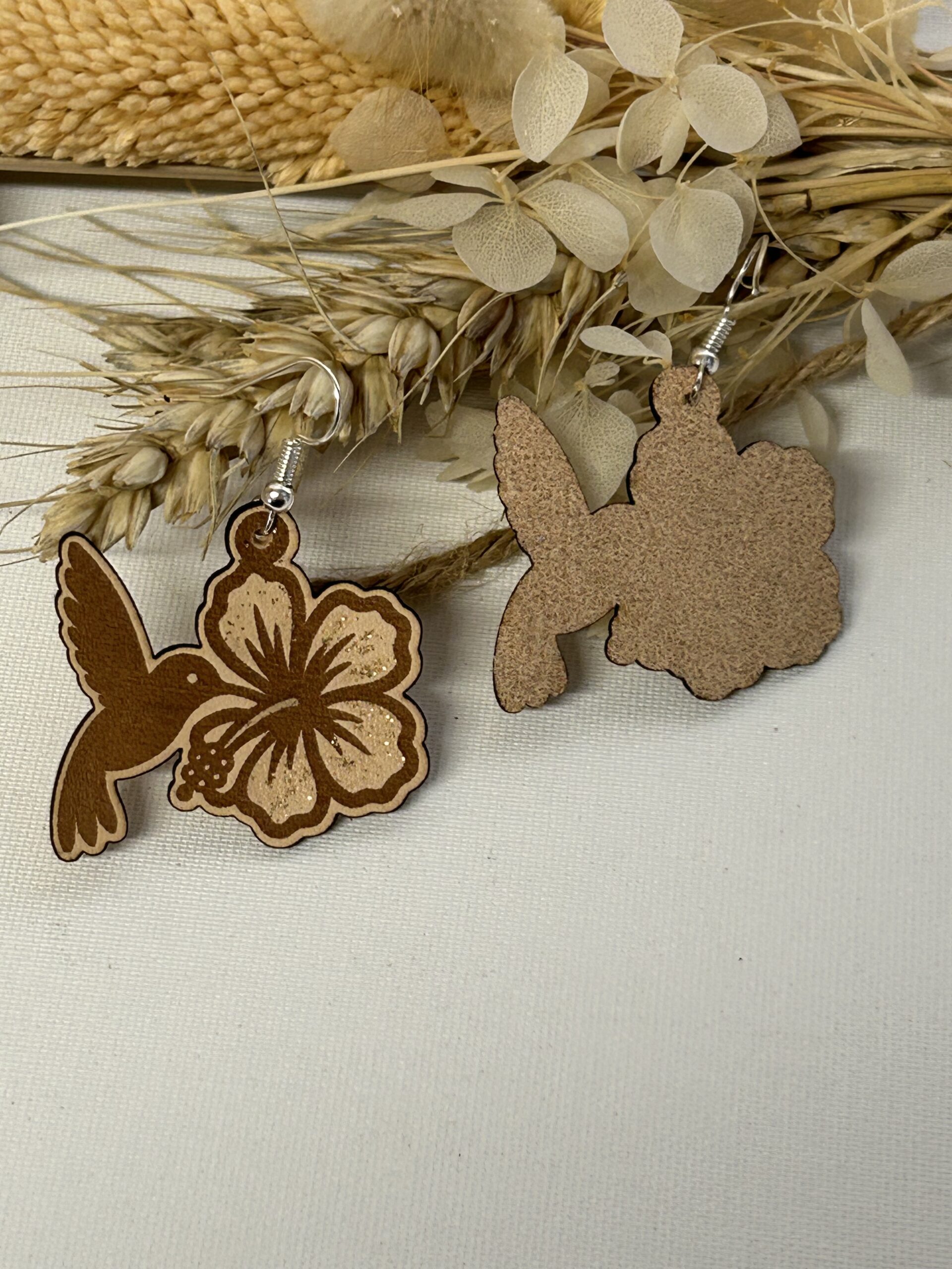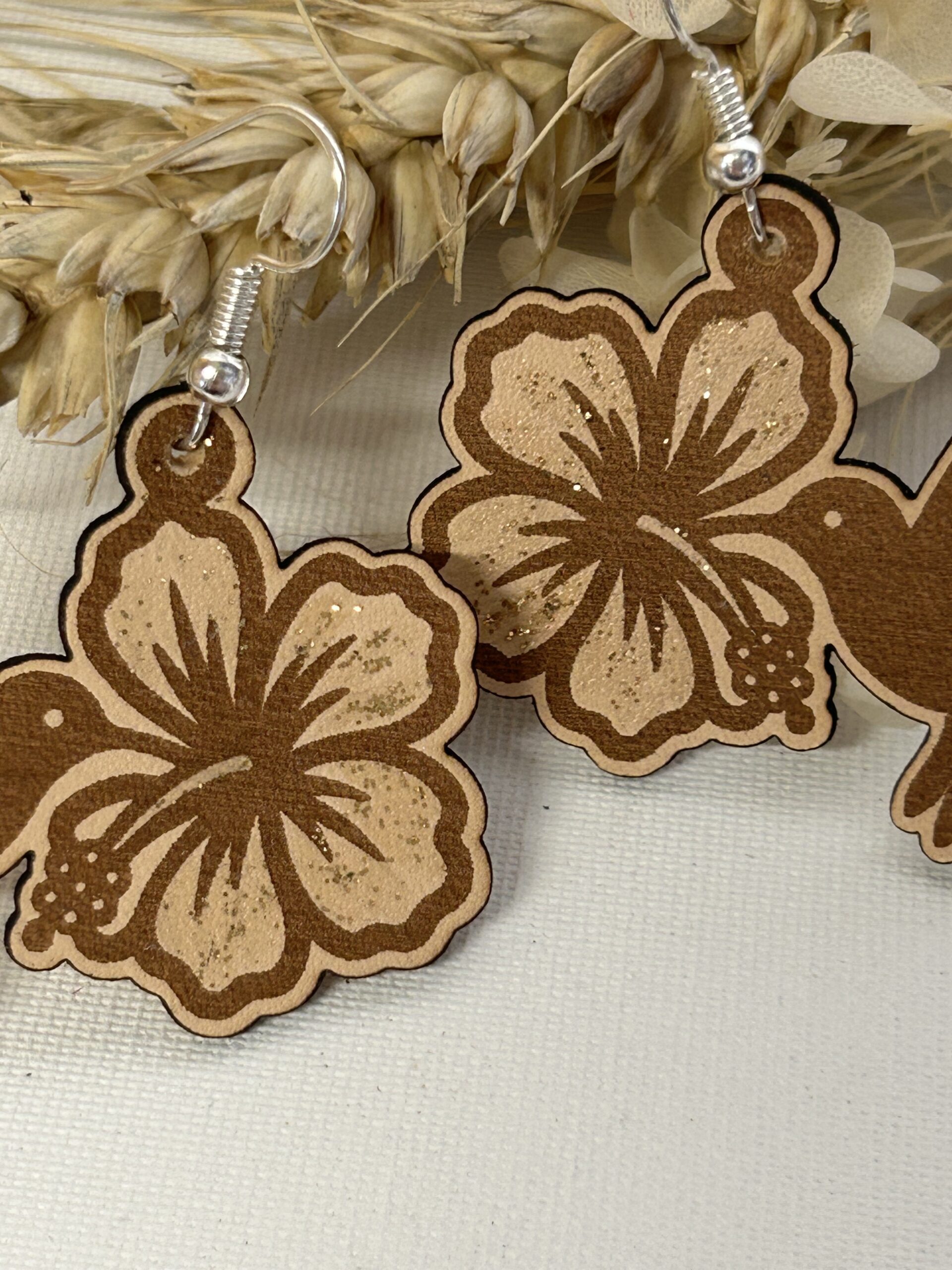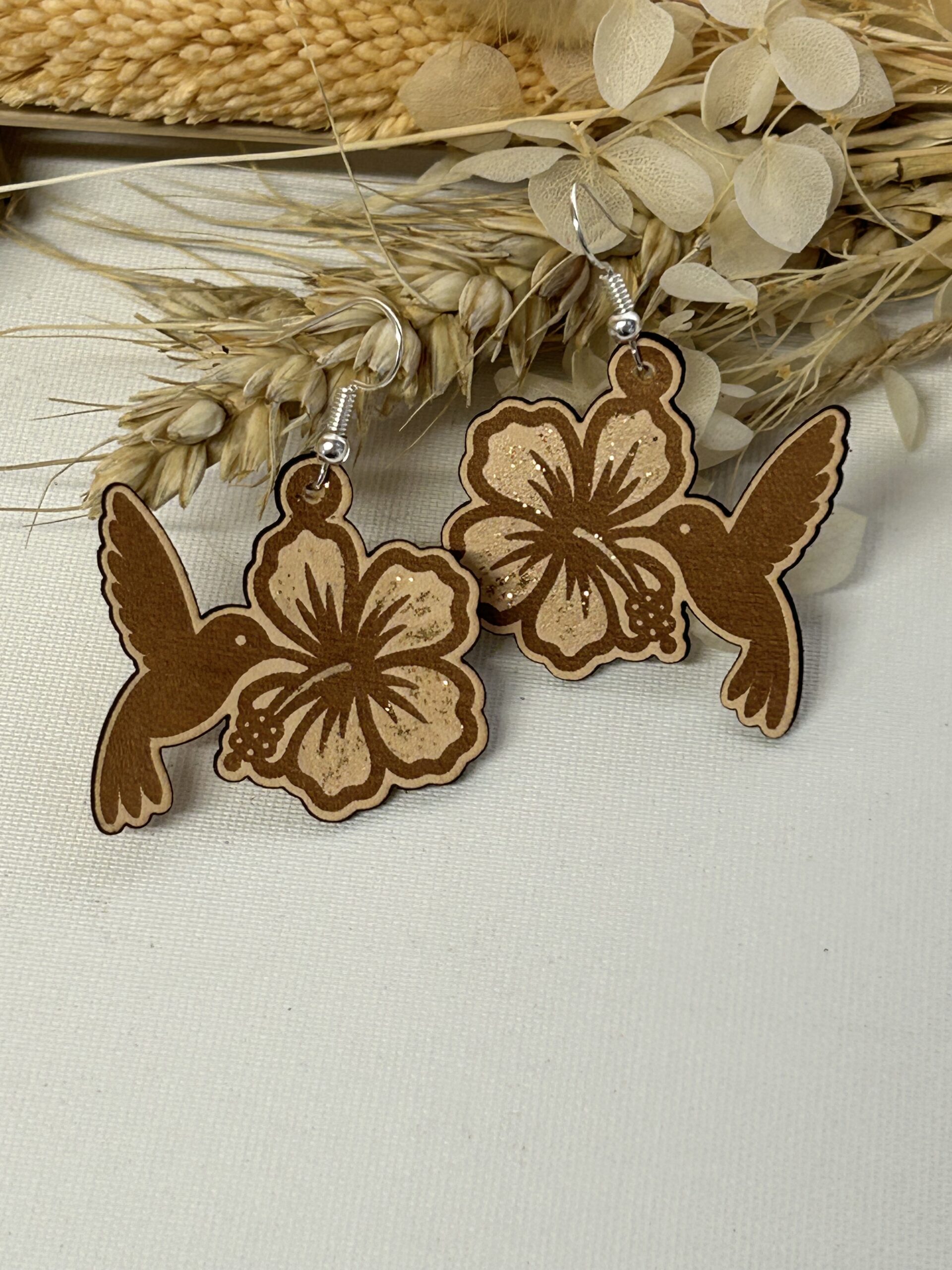 Boucles d’oreilles artisanales en cuir gravé, faites main. Légères, élégantes et confortables, avec monture en acier inoxydable sans nickel.