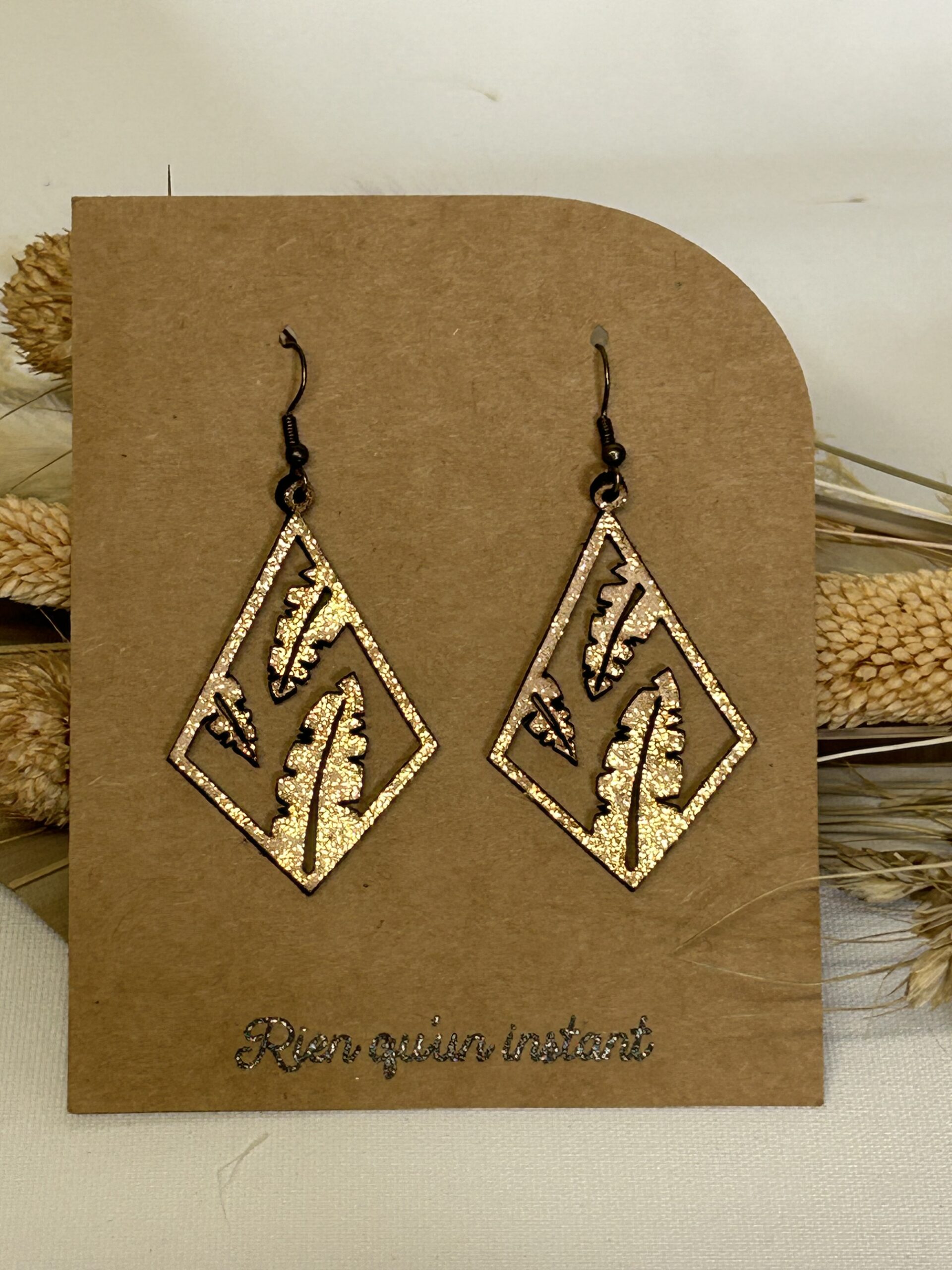 Boucles d’oreilles artisanales en cuir naturel, légères et confortables. Un bijou élégant et facile à porter, idéal pour sublimer toutes vos tenues.