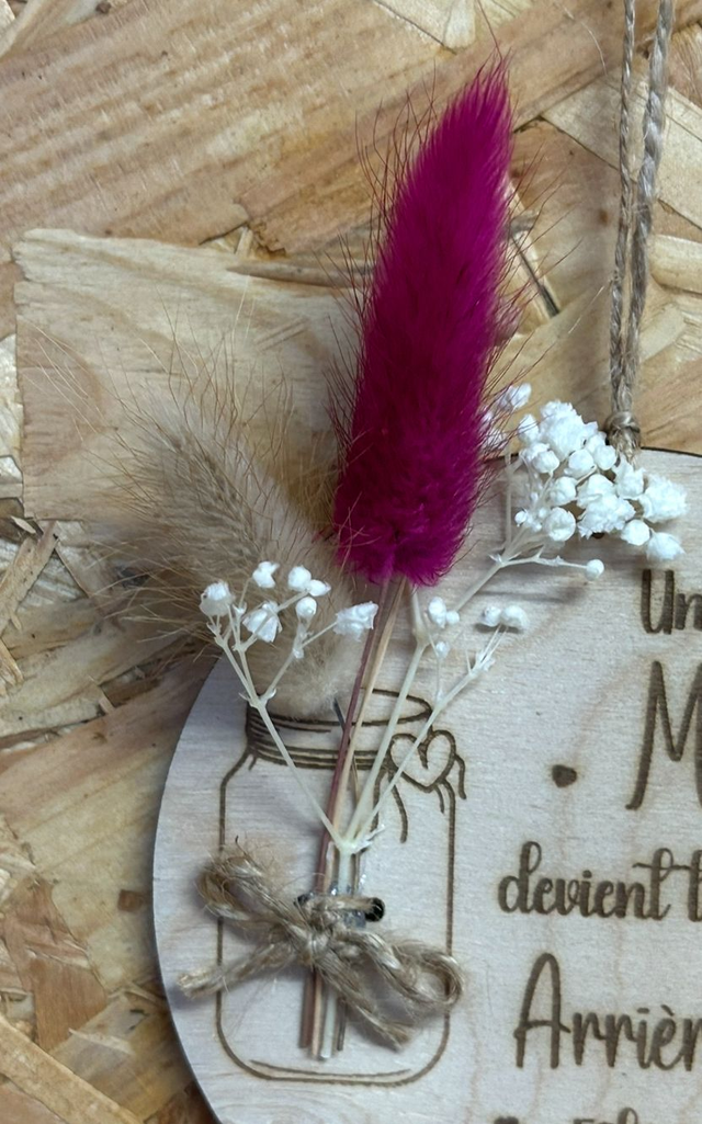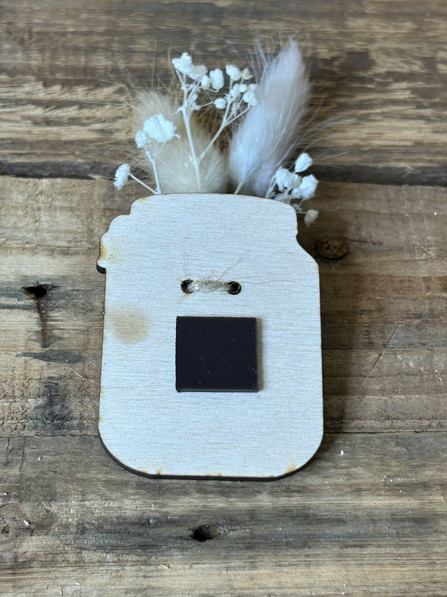 Magnet personnalisé en bois et fleurs séchées support blanc– Cadeau invité mariage