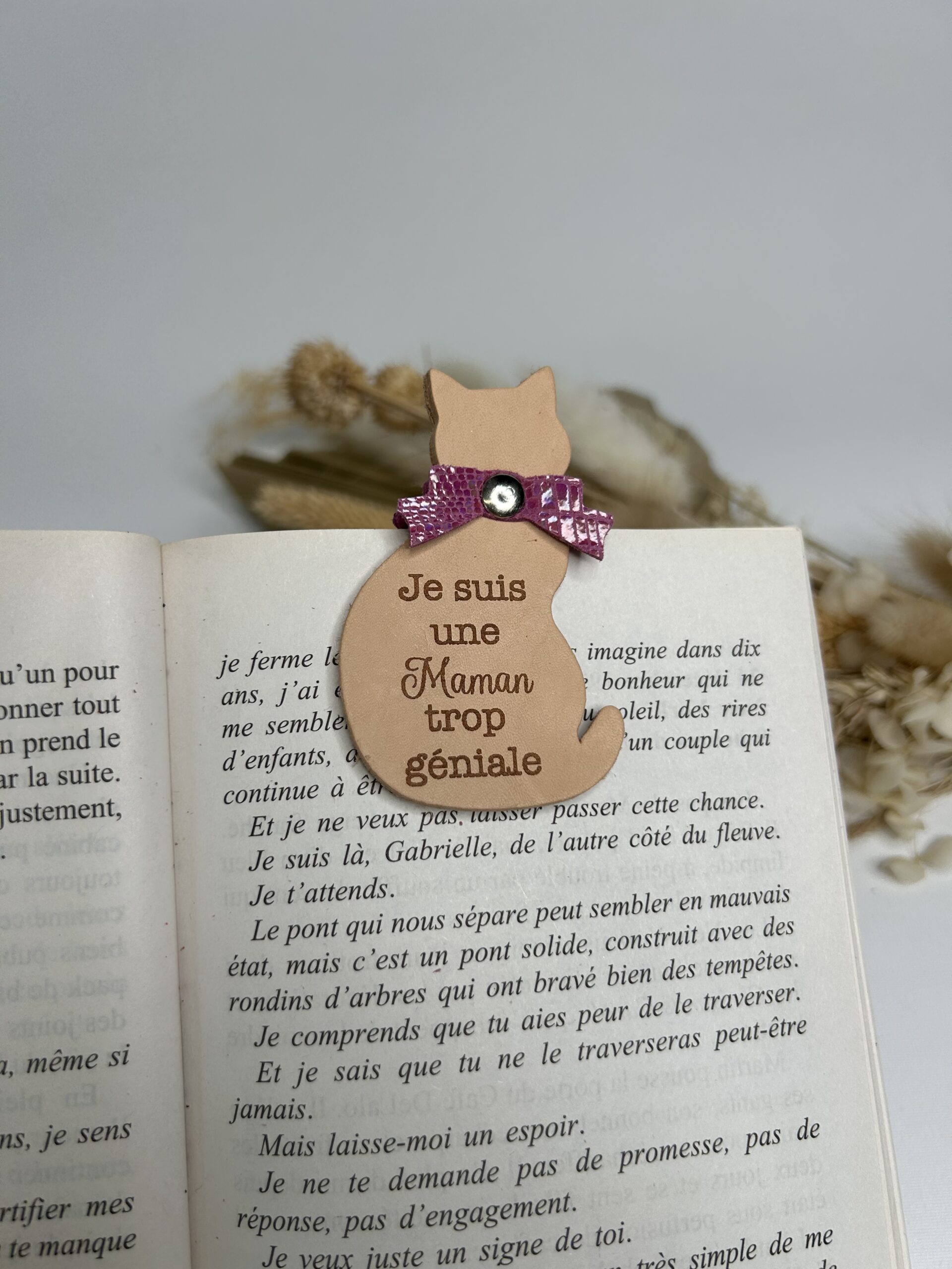 Marque-page magnétique chat en cuir “Maman”