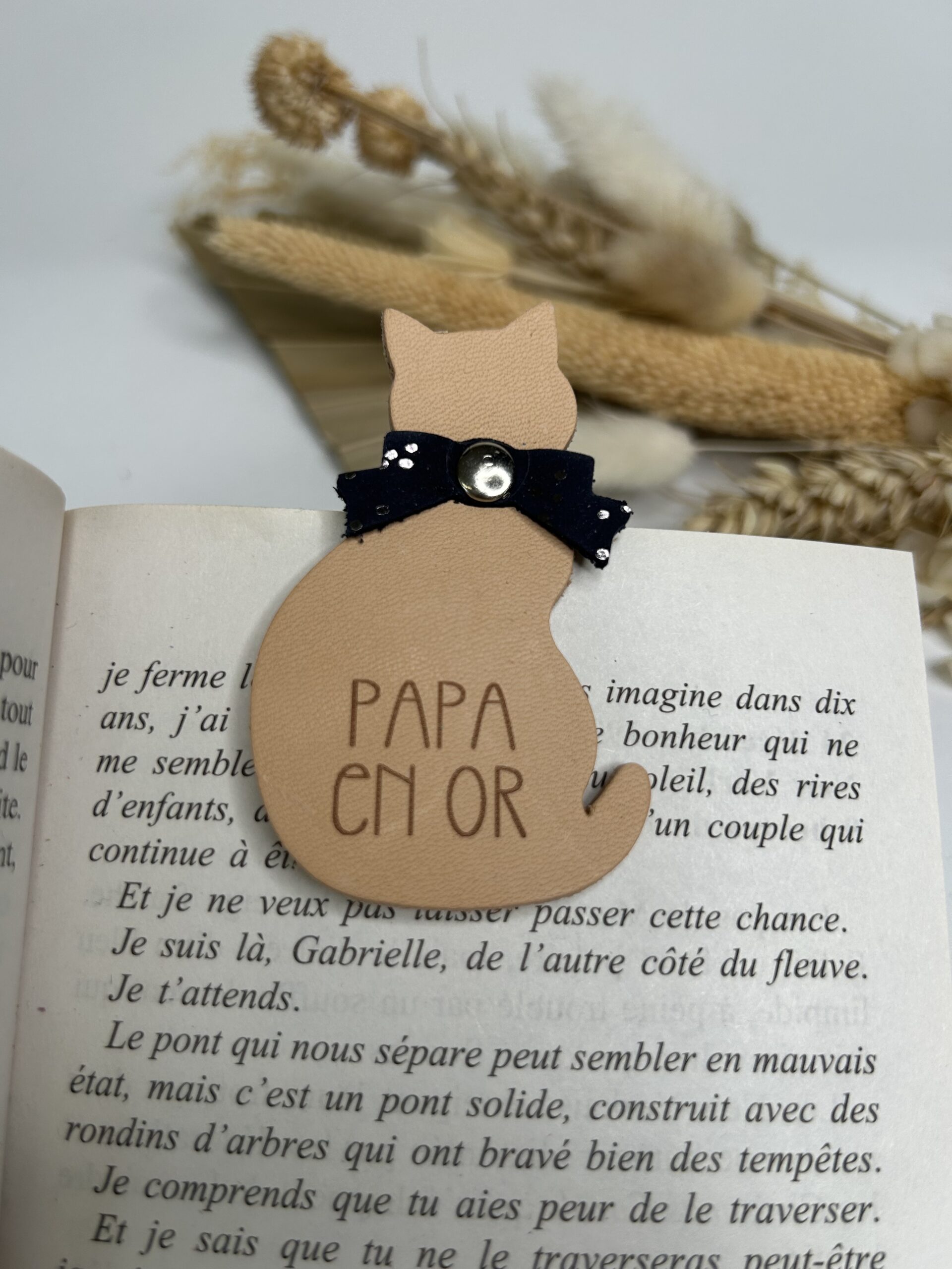 Marque-page magnétique chat en cuir “Papa”