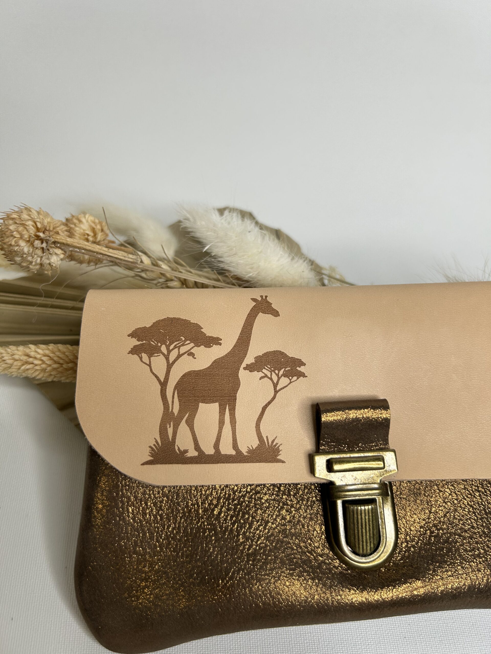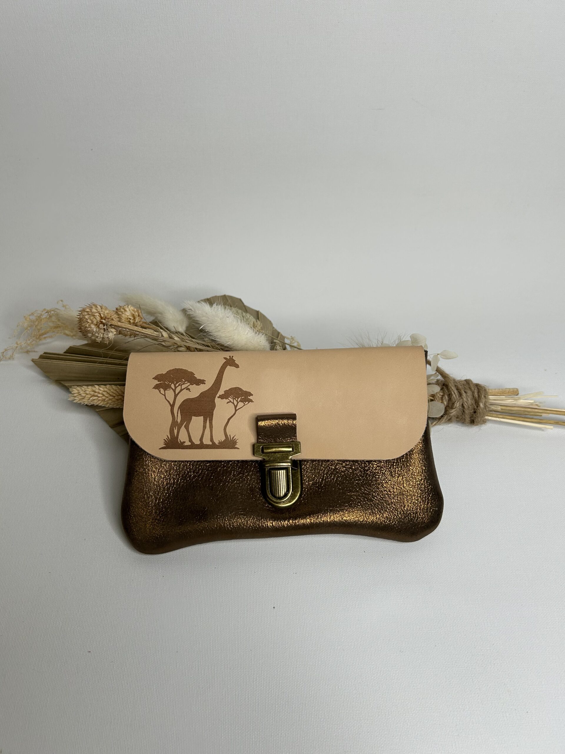 Pochette à papiers en cuir bronze avec son rabat délicatement gravé