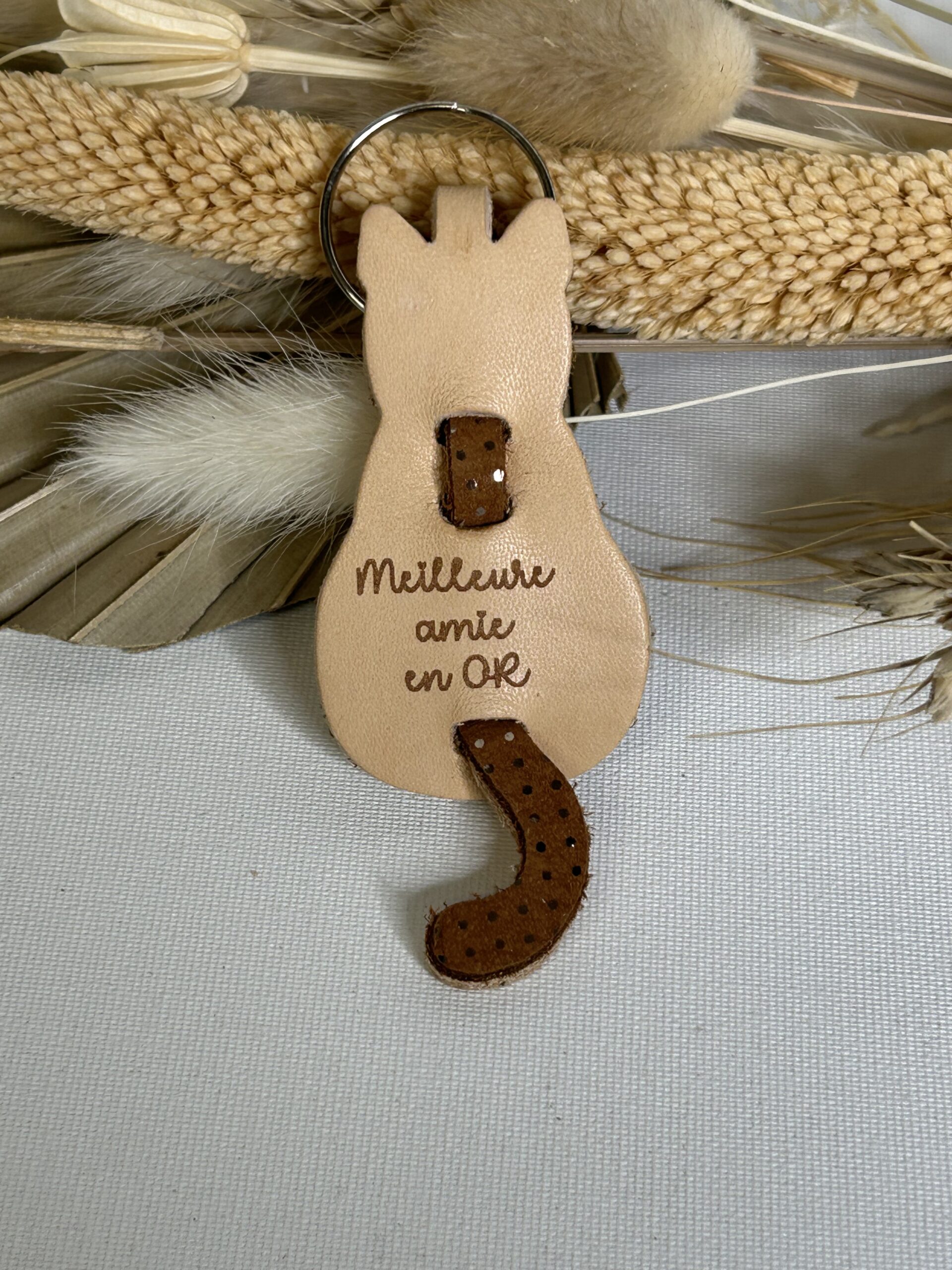 Porte-clés chat personnalisé en cuir fait main. Pratique, durable et chargé d’émotion, il accompagne les clés au quotidien avec style et sens.