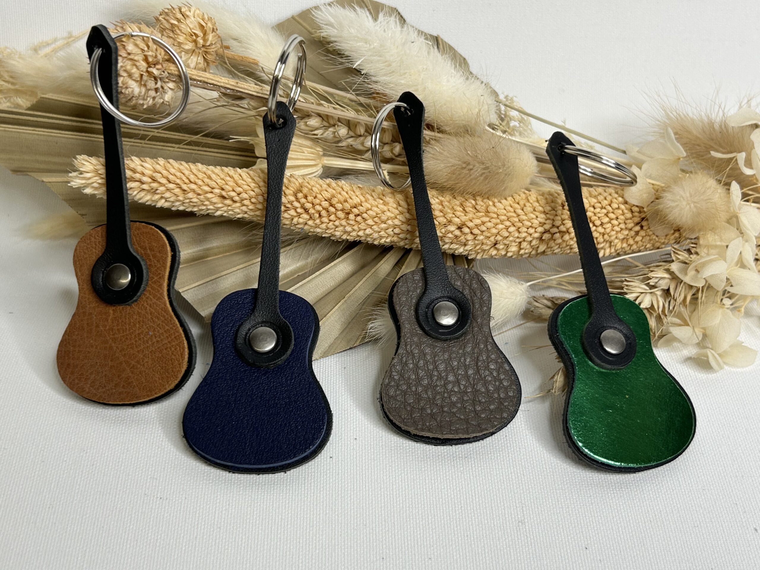 Ce porte-clés en cuir en forme de guitare allie utilité et univers musical. En effet, il permet de garder ses clés bien organisées tout en affichant une passion assumée. Grâce à son design évocateur, il devient un accessoire du quotidien à forte valeur symbolique.