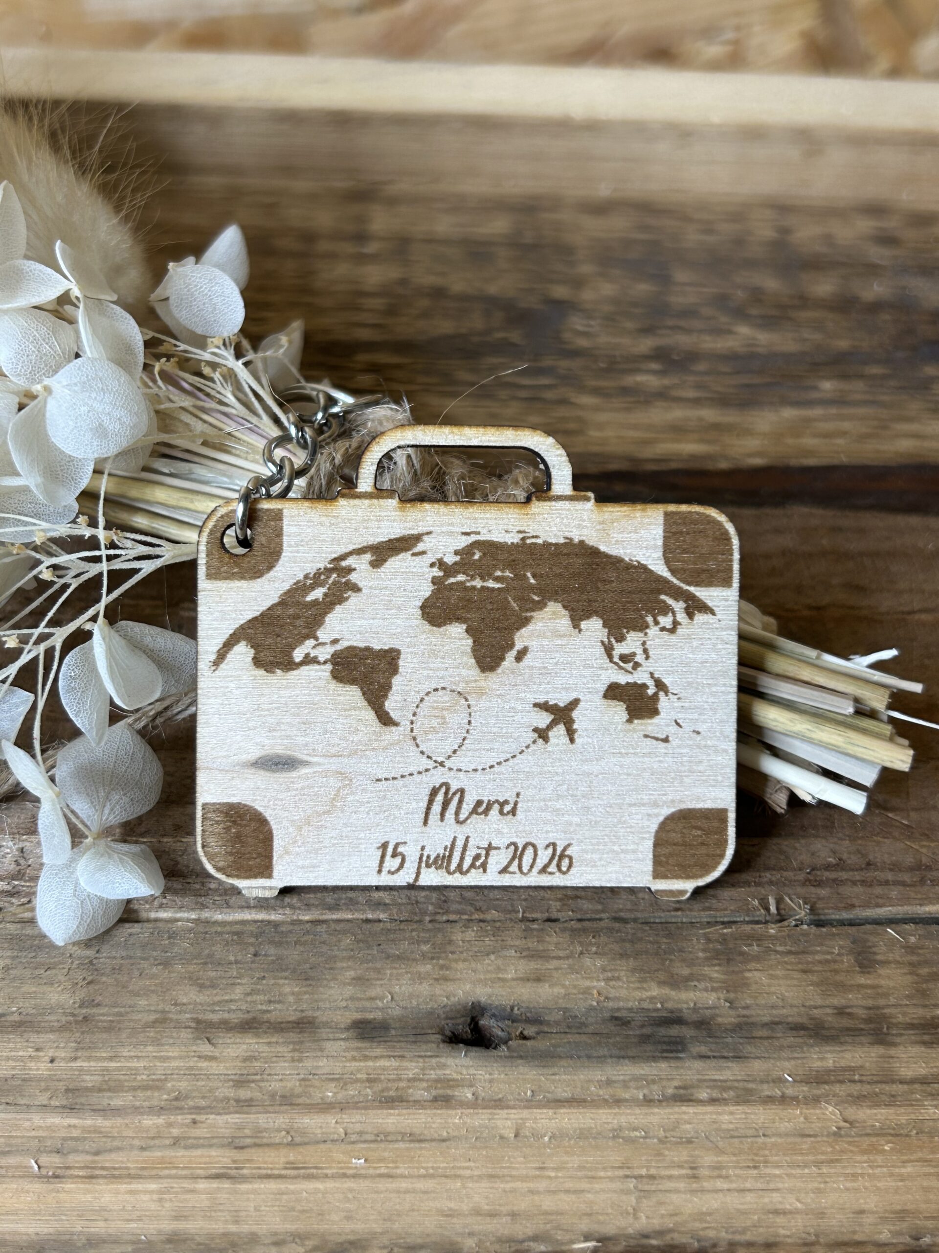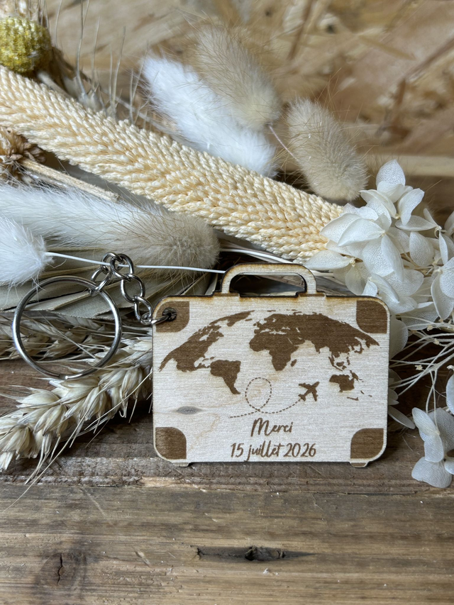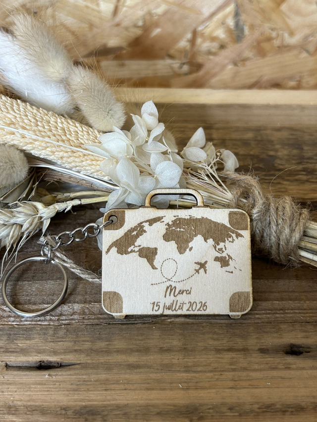 Offrez à vos proches un souvenir gravé de votre grand jour avec ce charmant porte-clés en bois, personnalisé avec vos prénoms et la date de votre mariage.